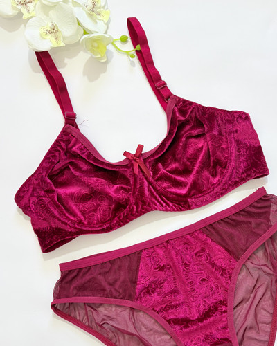 ست سوتین وشورت مخملی سرخابی ژوبین